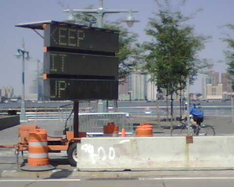 I came across this enigmatic construction sign yesterday on the side of the West Side Highway in Manhattan. I did a double-take, trying to determine if, perhaps, I was the only one who could see this message.