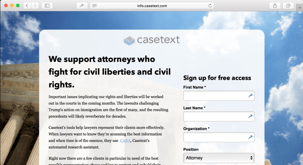 For example, our portfolio company Casetext, which builds a legal research tool that they sell to law firms, has offered free access to their platform for any lawyer working on civil liberties and civil rights issues: