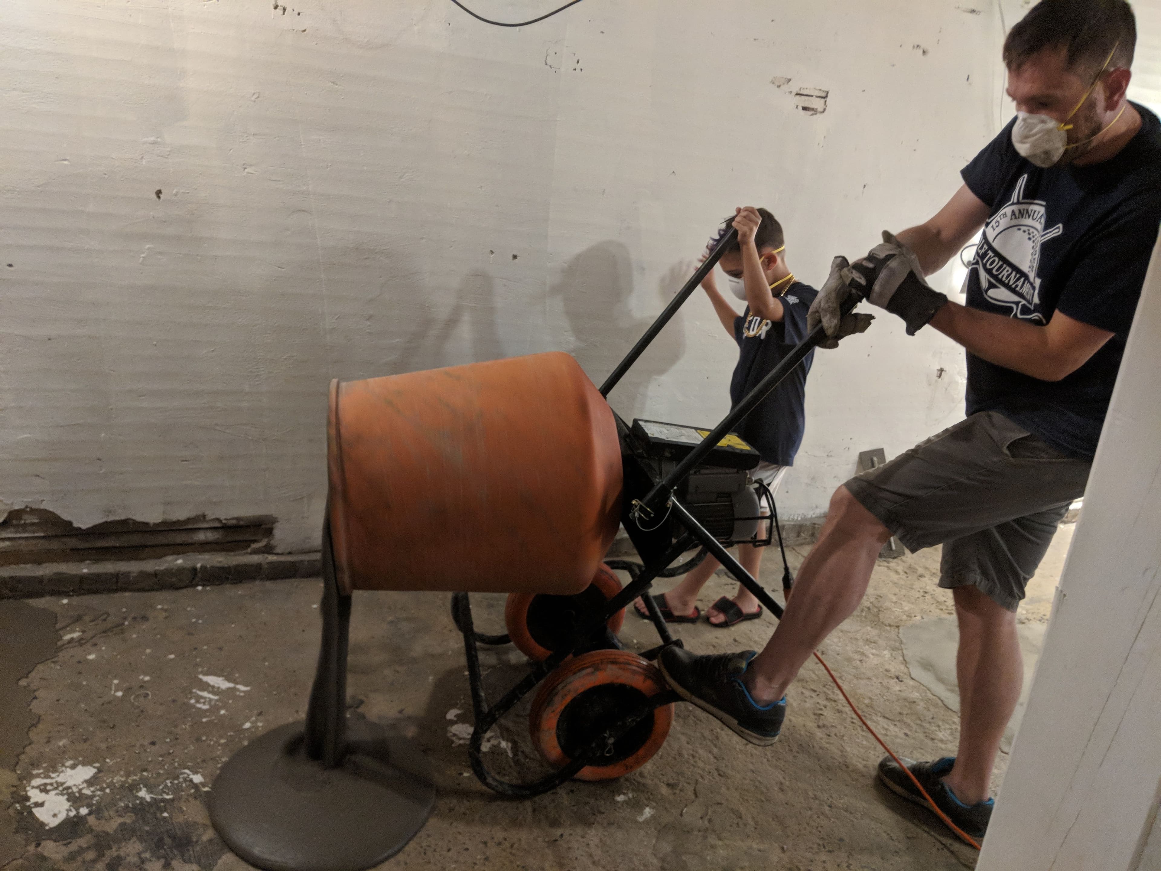 For example, over the past few months I have been renovating our basement, turning an unfinished, dank storage area into a playroom for the kids. Here is my friend Ned, and my son, as we were pouring the new concrete floor over the summer: