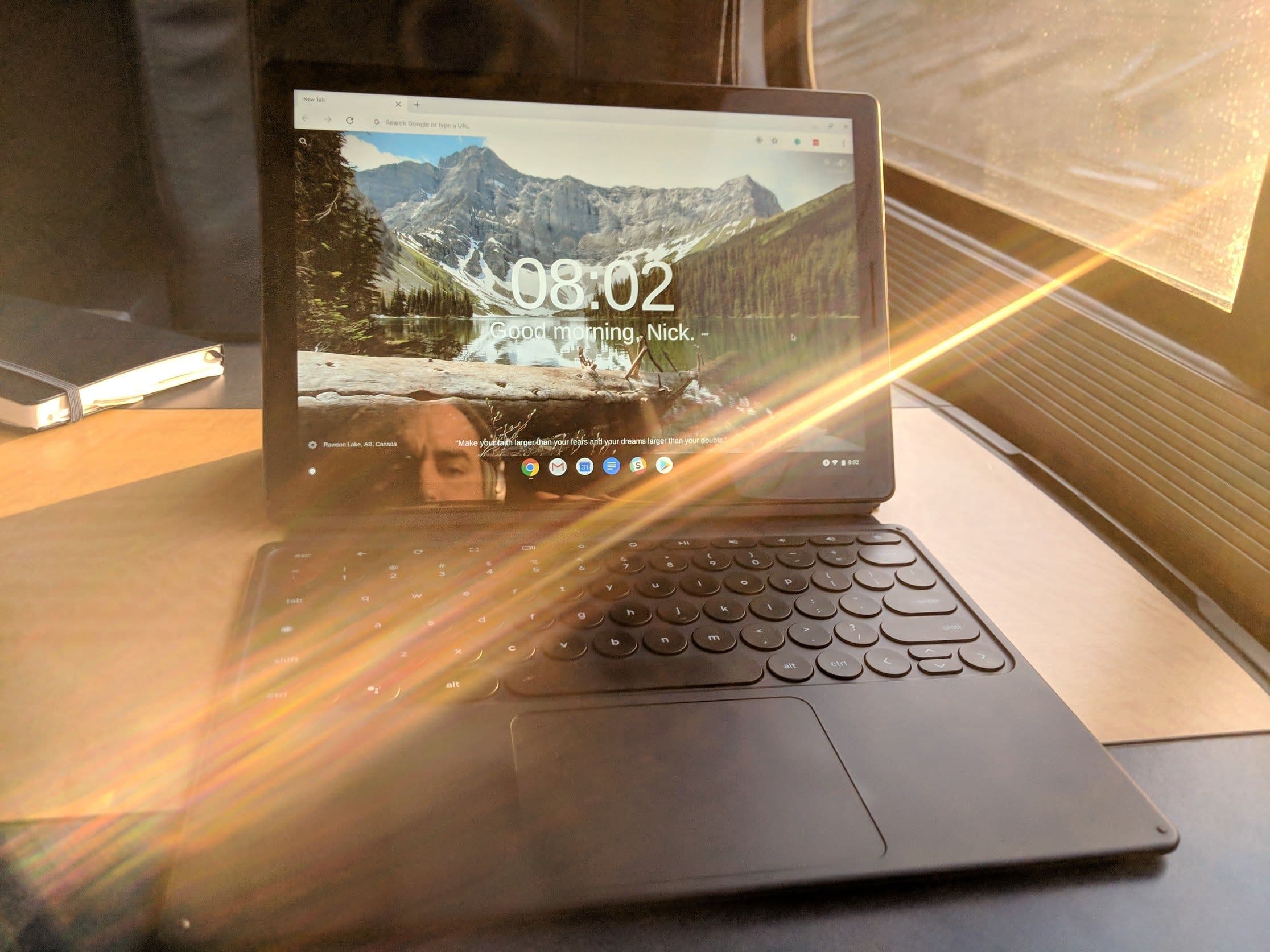 The Pixel Slate is an odd machine, and I am still trying to figure out how to use it, and then, whether I like it or not. The heart of the oddness is that it is really equal parts laptop and tablet — when the keyboard is attached it feels and acts like any other Chromebook. And with the keyboard detached, it feels like an Android tablet — actually running mobile apps from the Google Play store. (I didn’t realize this until now, but apparently this is also true for other new Chromebooks)