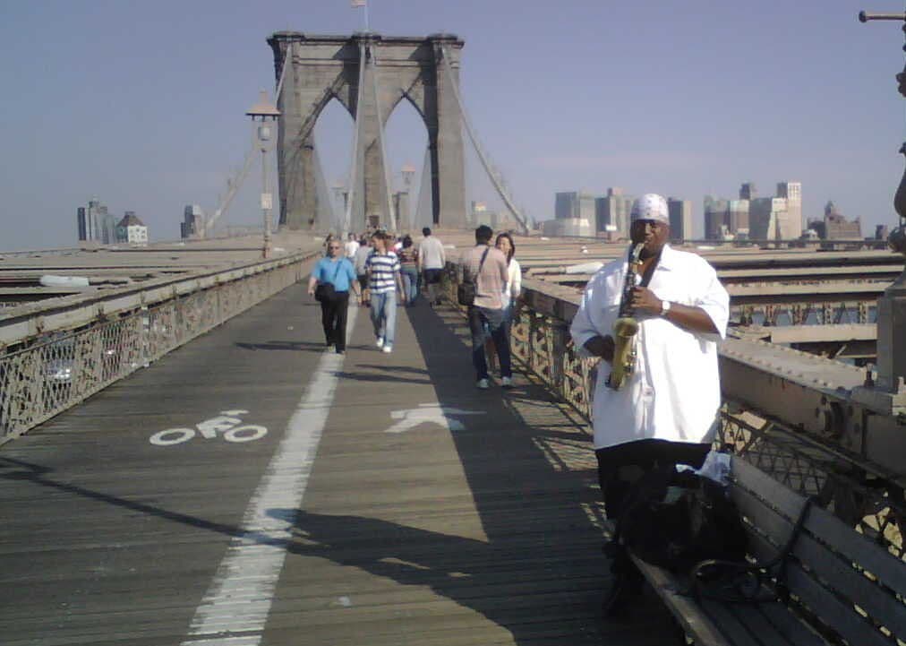 We didn’t get to spend as much time as we would have liked exploring the event, but we saw a few nice moments. Sax on the Brooklyn Bridge, above, and this accordion concert (!) at Houston & 1st:
