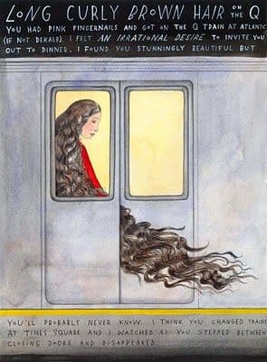 In her bathroom, a friend of mine has some really beautiful illustrations of posts from the Craigslist Missed Connections section. If you’ve never looked at missed connections, you should — there are some really wonderful notes in there (also some sketchy ones). Here’s a beautiful one from today: