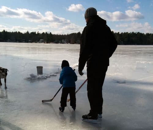 It’s was unbelievable, really — launching from the town beach and skating as far as you felt like, around the edge of the lake or straight across it. There were tons of people out on the lake — a bunch of pick up hockey games (our friends counted 5 separate DIY rinks marked out around the lake), people just taking a nice tour, and even a guy riding a motorcycle back and forth across the middle (amazingly).