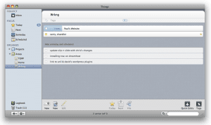 Of the applications featured in the comparison, the two I looked closely at were OmniFocus and Things. OmniFocus is the more powerful of the two, and is actually quite similar to Chander in many ways (both have “Clean up” button in exactly the same place). Both are proprietary applications that come at a price (OmniFocus is $79 and Things is $49), but I’m not an open source hard-liner (I’m typing this on a Mac); I’m willing to pay for software if it actually makes my life easier, though of course I prefer to use and support open source tools.
