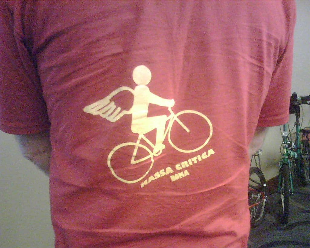 Lots of critical mass t-shirts, from many different cities. Budapest, above.