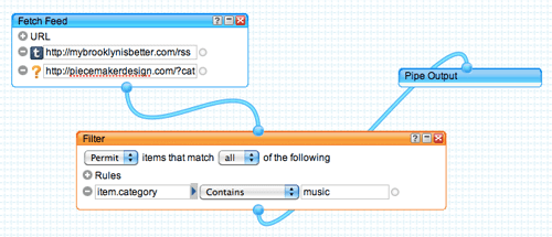 A few of these friends publish their music on the web (see Piecemaker and My Brooklyn is Better). Problem is, they each use different platforms to publish, and as far as I can tell, there’s not a great way to combine these into one stream. Piecemaker uses WordPress and outputs a standard podcast feed, and My Brooklyn is Better uses Tumblr, which embeds a flash player and forbids linking directly to the audio file. I’m sure I have other friends who are publishing on platforms (Last.fm, 8tracks, Facebook?) that I don’t know about yet).